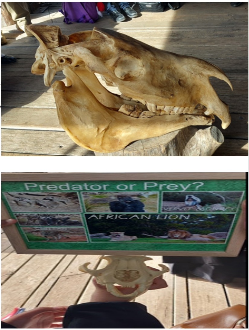 We got to hold and study the skull replicas of an African lion, A Vervet Monkey, a Western Lowland Gorilla, a Meerkat, an African Wild Dog and a Cheetah. In our small groups, had to make an educated guess about which skull belonged to which one of those animals, then check our answers when back in the whole